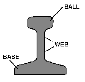 A rail is made up of three parts, the base, the part that rests on the ties, the web, the vertical part between the base and the ball, and the ball, the part the wheels run on. After the length of the rail is determined the cut line is marked by chalk or something to make a mark on the rail. The rail must be turned during the cutting process. This could be accomplished by using the top end of two track wrenches inserted in the bolt holes. It can be unsafe if not done correctly. There was a tool I forgot to mention. It is called a rail wrench. This wrench fits on the